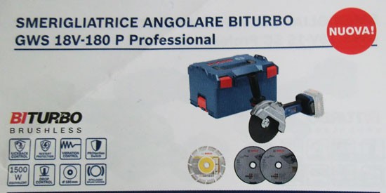 Smerigliatrice angolare Litio 18 Volt Bosch GWS18V-180P senza battteria e caricabatteria, prezzo da scontare vedi sito.